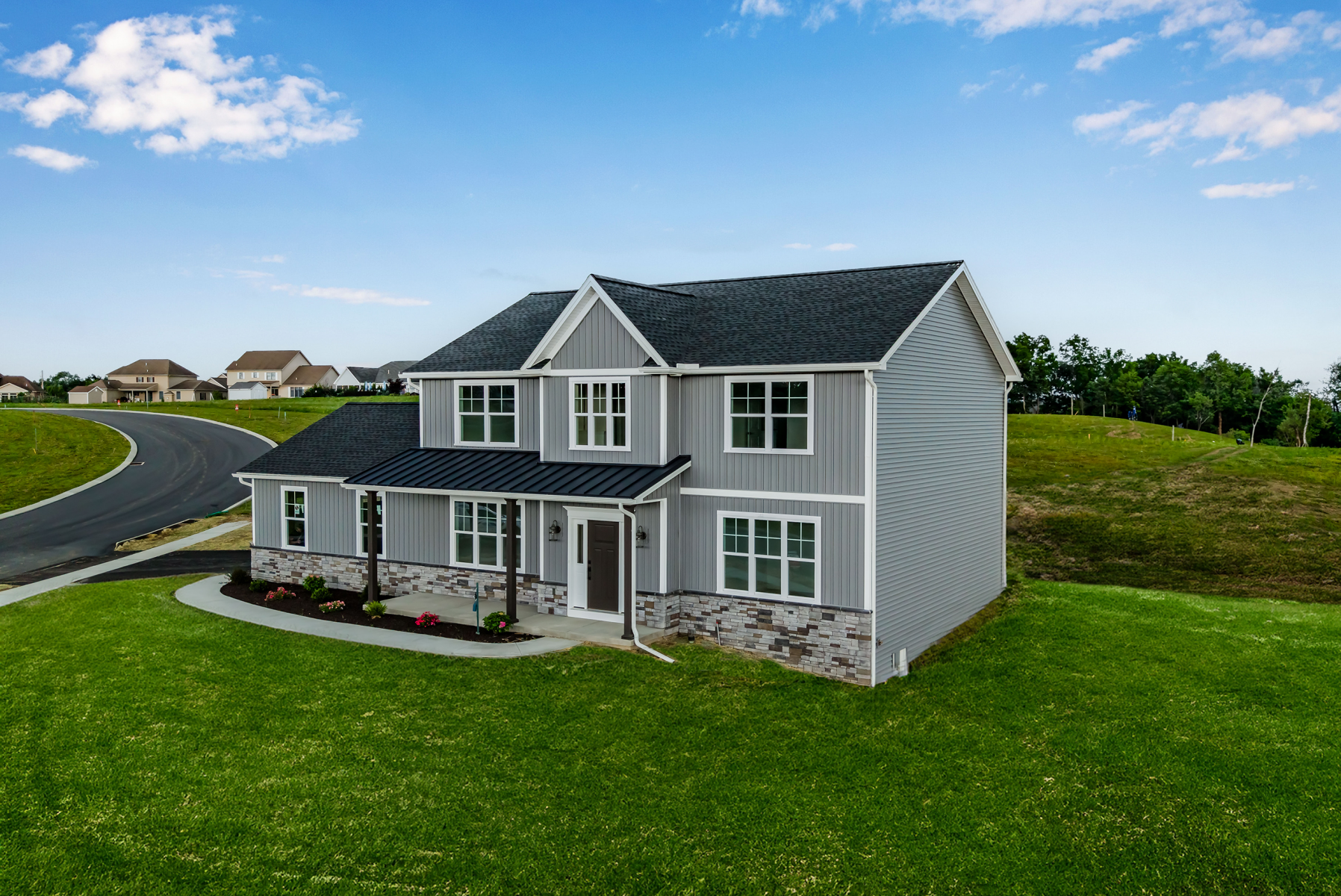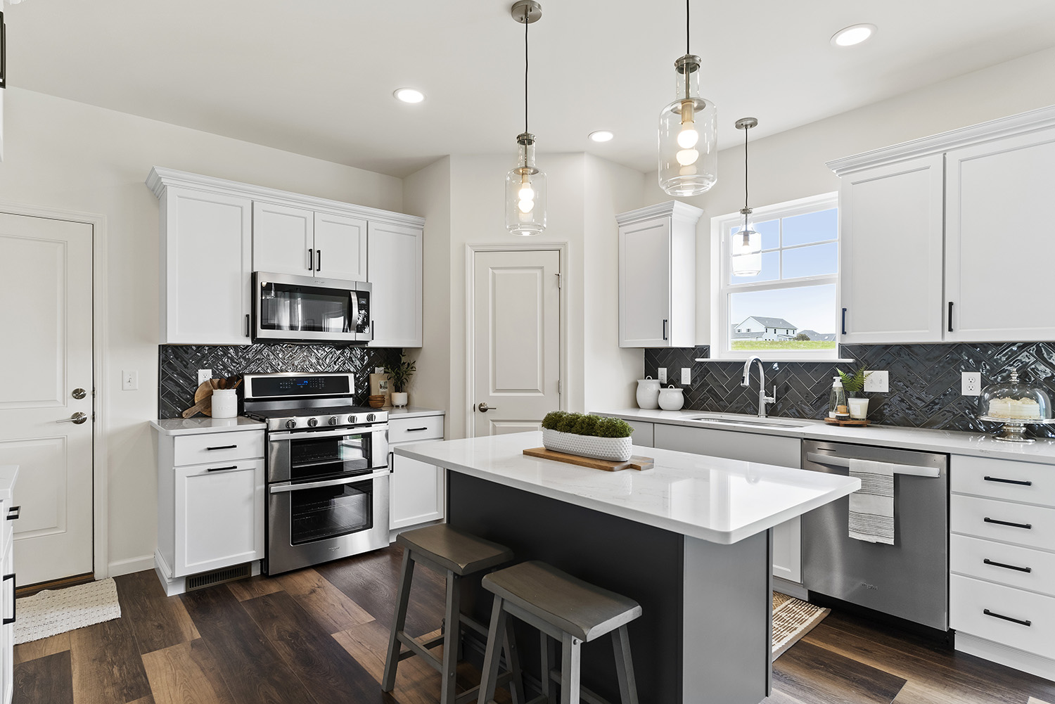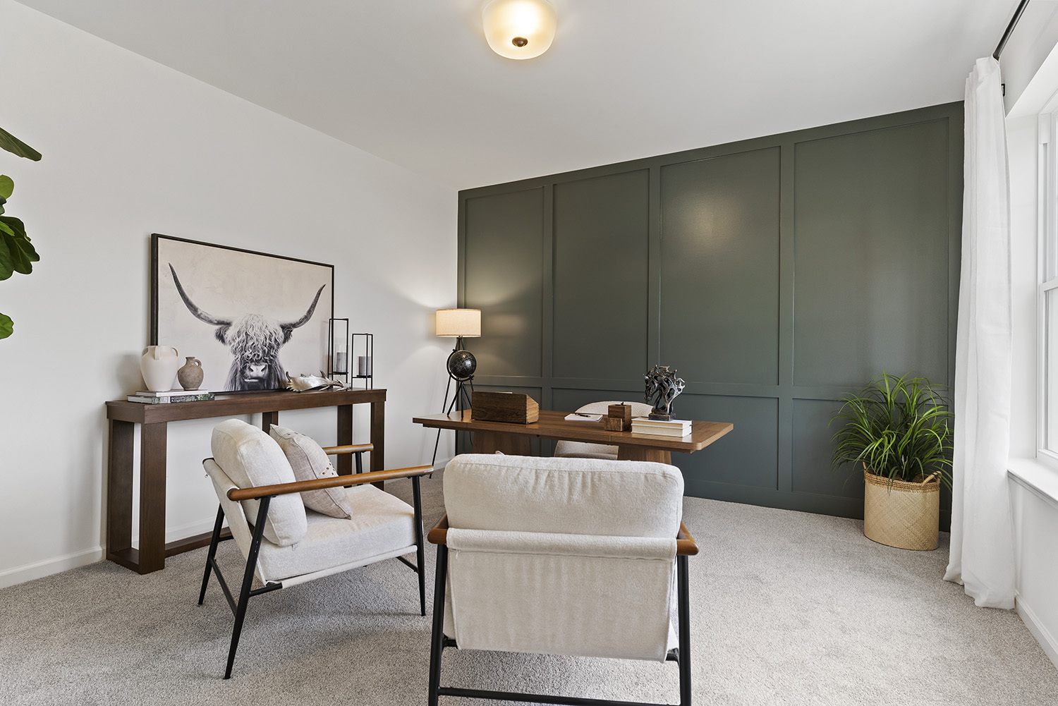 Welcome to the Georgetown in Huntleigh - a thoughtfully designed 4-bedroom, 2.5-bath new construction home offering a perfect blend of elegance, versatility, and lasting quality built on a spacious .40-acre homesite. The open-concept kitchen and living area serve as the heart of the home, offering a seamless layout ideal for both everyday living and entertaining. Many upscale finishes, including premium cabinetry, quartz countertops, and luxury vinyl plank flooring enhance the home’s timeless appeal. A formal dining room provides the perfect setting for holiday gatherings or intimate dinners. A dedicated home office or flex room offers privacy and flexibility for work, hobbies, or a quiet retreat. Upstairs, all four bedrooms are thoughtfully positioned alongside a central laundry room for everyday ease. The primary suite is a sanctuary, complete with a walk-in closet and a spa-like bathroom featuring a custom tile shower and decorative mirrors.