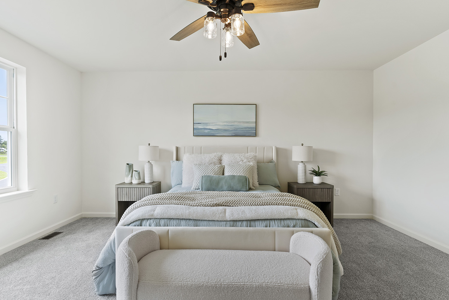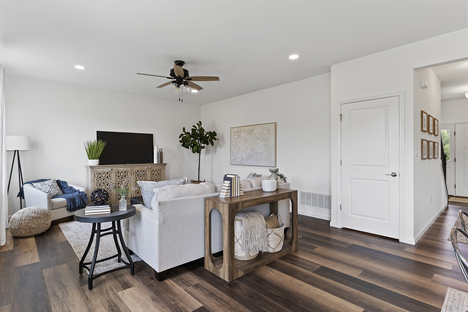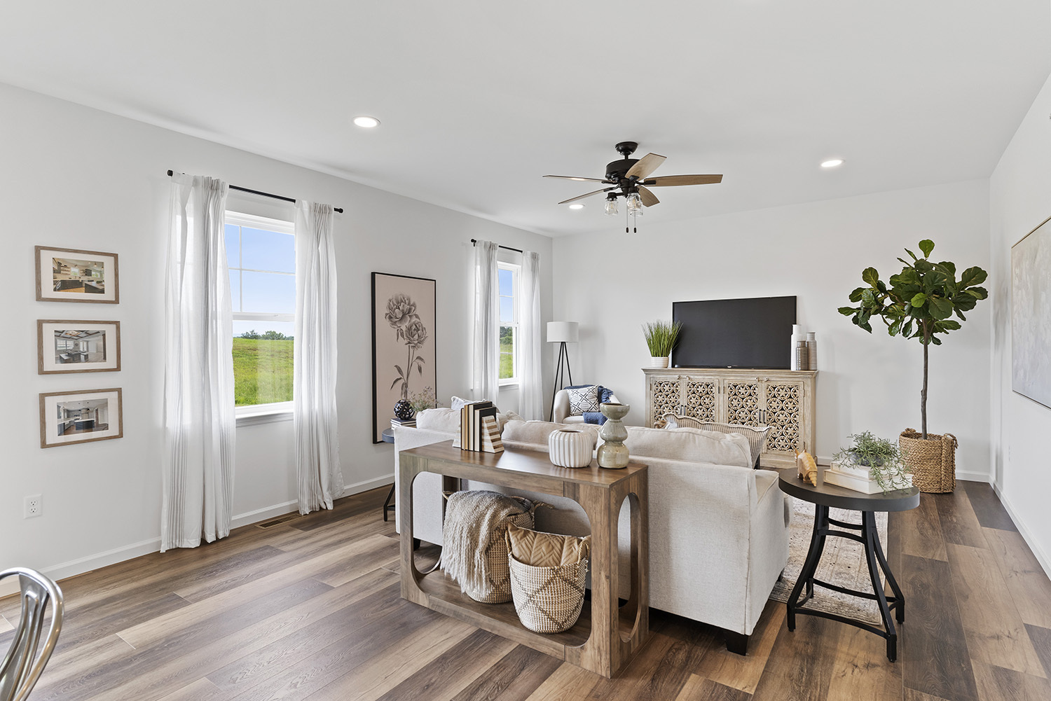 Welcome to the Georgetown in Huntleigh - a thoughtfully designed 4-bedroom, 2.5-bath new construction home offering a perfect blend of elegance, versatility, and lasting quality built on a spacious .40-acre homesite. The open-concept kitchen and living area serve as the heart of the home, offering a seamless layout ideal for both everyday living and entertaining. Many upscale finishes, including premium cabinetry, quartz countertops, and luxury vinyl plank flooring enhance the home’s timeless appeal. A formal dining room provides the perfect setting for holiday gatherings or intimate dinners. A dedicated home office or flex room offers privacy and flexibility for work, hobbies, or a quiet retreat. Upstairs, all four bedrooms are thoughtfully positioned alongside a central laundry room for everyday ease. The primary suite is a sanctuary, complete with a walk-in closet and a spa-like bathroom featuring a custom tile shower and decorative mirrors.