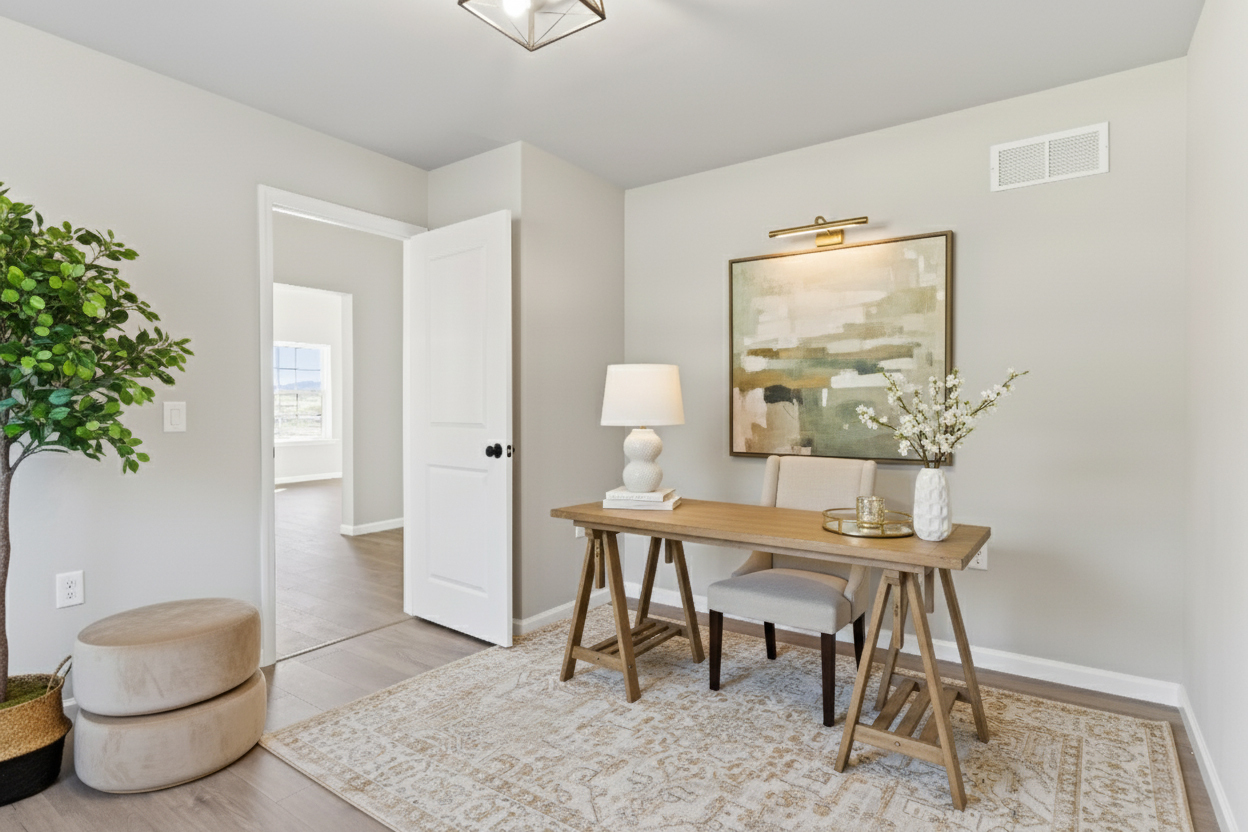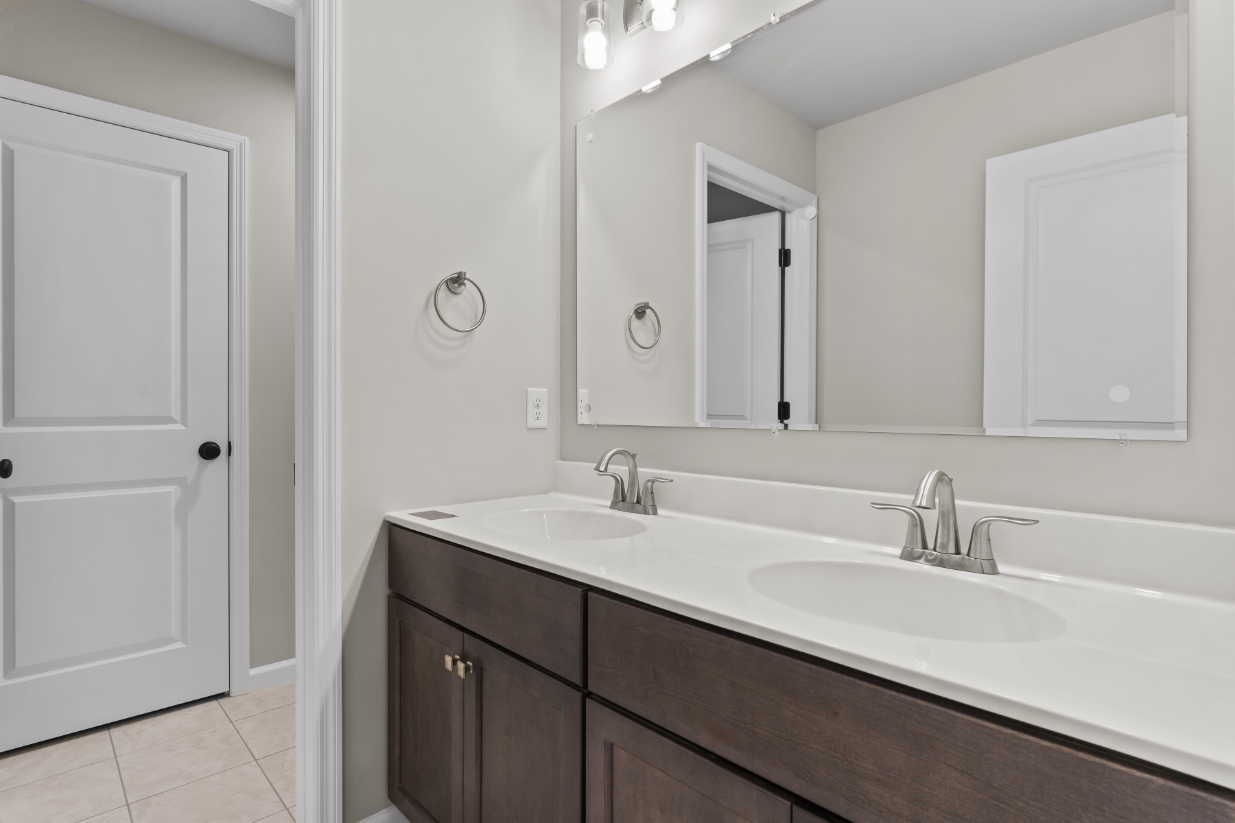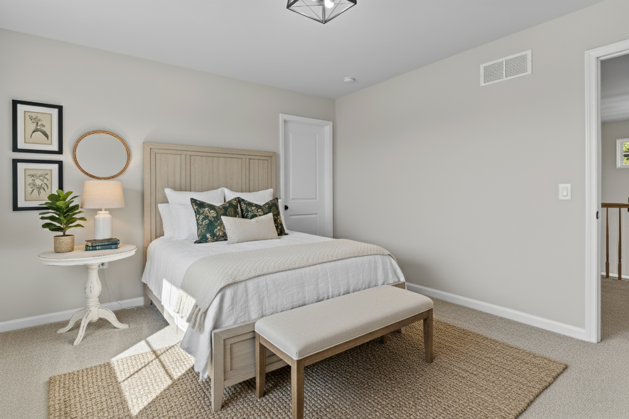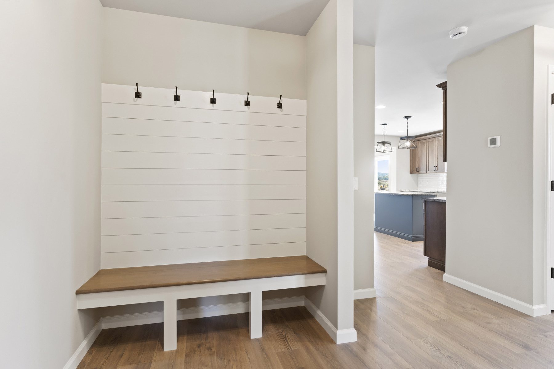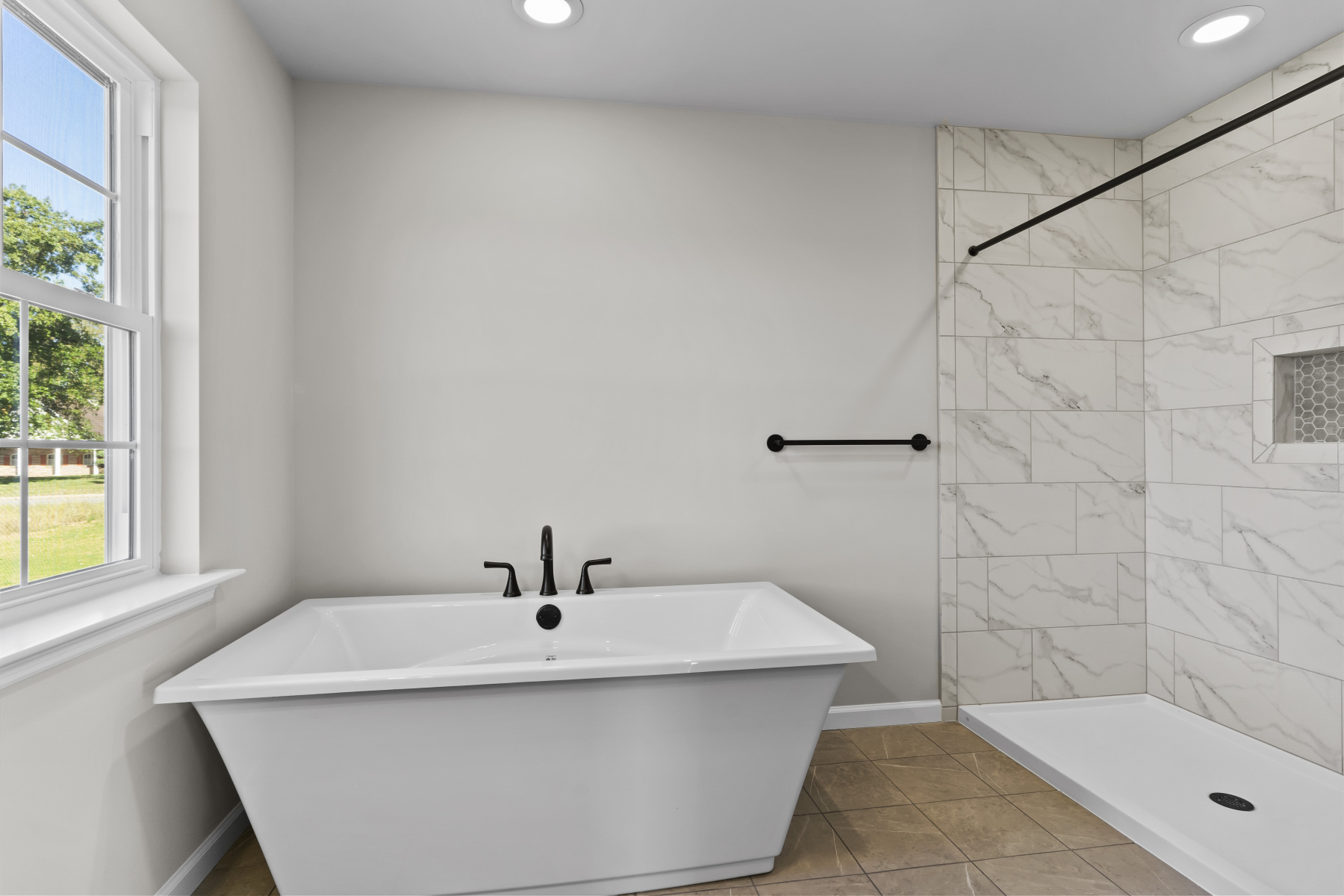 Upstairs, the spacious owner’s suite serves as a private retreat with a spa-inspired bath, complete with a soaking tub and dual vanities. Thoughtful details like designer tile flooring, a shiplap drop zone, and high-quality craftsmanship highlight Fine Line Homes’ attention to detail.